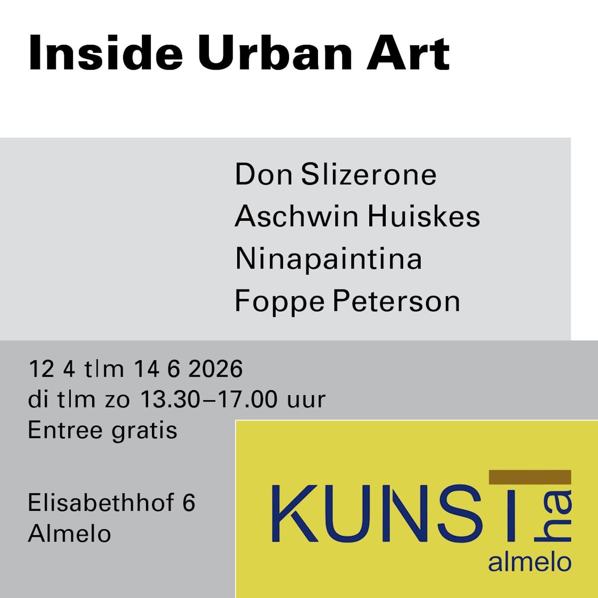 Kunsthal gesloten wegens inrichting 'Inside Urban Art': dinsdag 7 april t/m zaterdag 11 april
